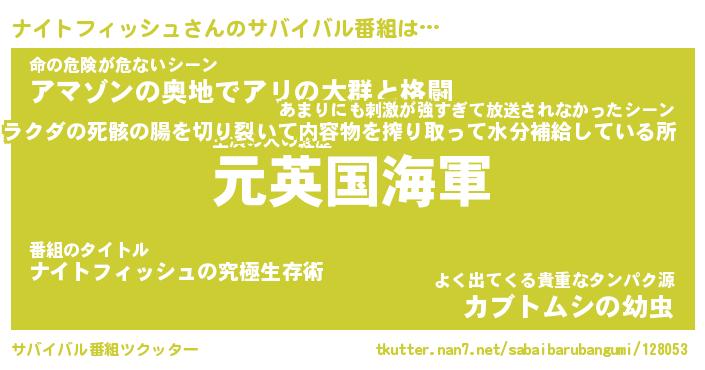 | 肩書あだ名 | 『ナイトフィッシュ社長』 |
