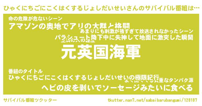| 欧米人風あだ名 | 『マイケルひゃくにちごにこくはくするじょしだいせい』 |
