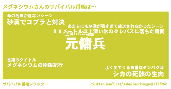 | 胡散臭い通販商品みたいなあだ名 | 『億万長者になれる霊験あらたかなお札…その名も「メグネシウム」』 |