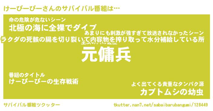 | 伝説のあだ名 | 『封印されし傭兵けーぴーぴー』 |