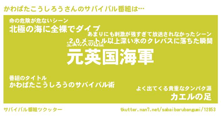 | 伝説のあだ名 | 『伝説のスナイパーかわばたこうしろう』 |
