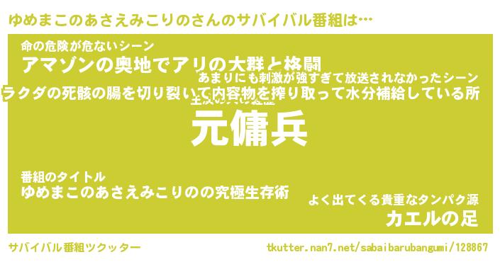 | ツイッター | ゆめまこのあさえみこりのさんのツイッターID『namakemono_star』 |