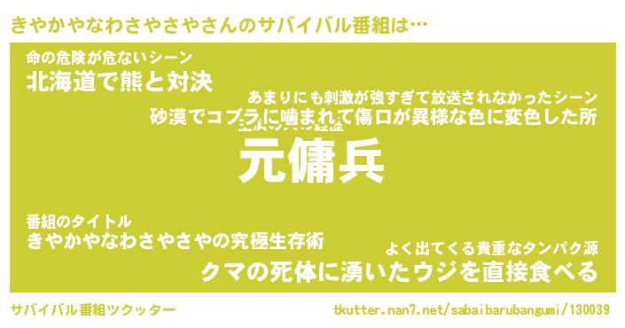 | 伝説のあだ名 | 『封印されし傭兵きやかやなわさやさや』 |