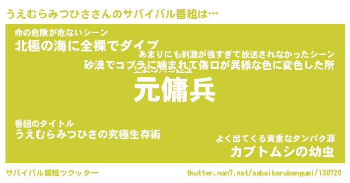 | 胡散臭い通販商品みたいなあだ名 | 『億万長者になれるブレスレット…その名も「うえむらみつひさ」』 |