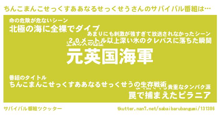 | 伝説のあだ名 | 『伝説の傭兵ちんこまんこせっくすああなるせっくせう』 |