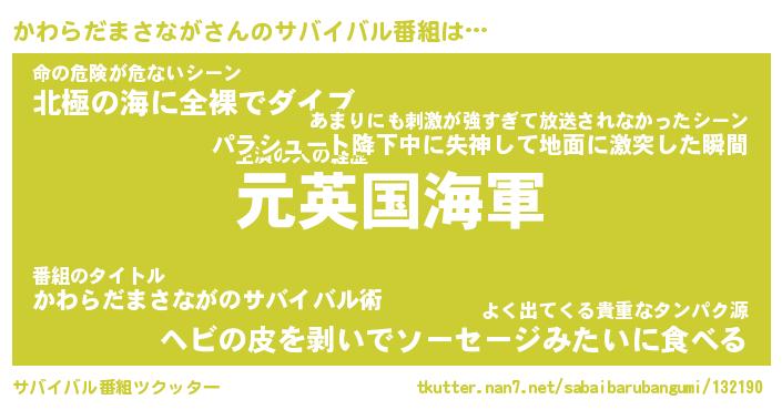 | 伝説のあだ名 | 『伝説のスナイパーかわらだまさなが』 |