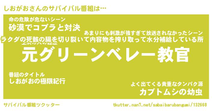 | 欧米人風あだ名 | 『マイケルしおがお』『ウサインしおがお』 |