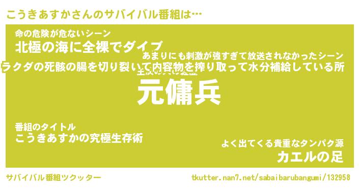 | 伝説のあだ名 | 『封印されしスナイパーこうきあすか』 |