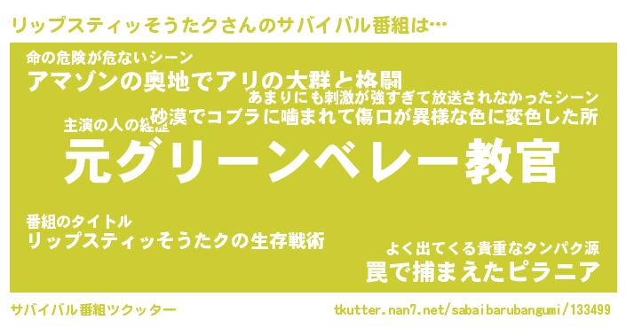 | 伝説のあだ名 | 『伝説のスナイパーリップスティッそうたク』 |