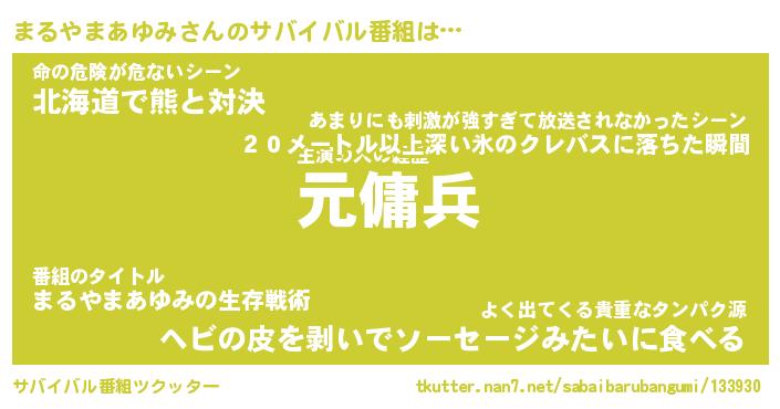 | 胡散臭い通販商品みたいなあだ名 | 『億万長者になれるブレスレット…その名も「まるやまあゆみ」』 |