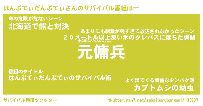 | ツイッター | はんぷてぃだんぷてぃさんのツイッターID『namakemono_man』 |