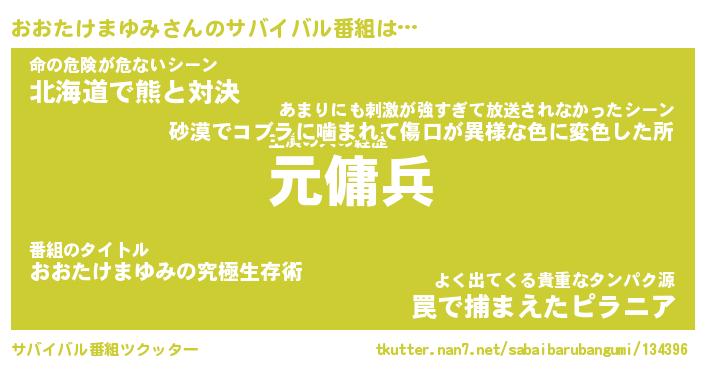 | 胡散臭い通販商品みたいなあだ名 | 『億万長者になれるブレスレット…その名も「おおたけまゆみ」』 |