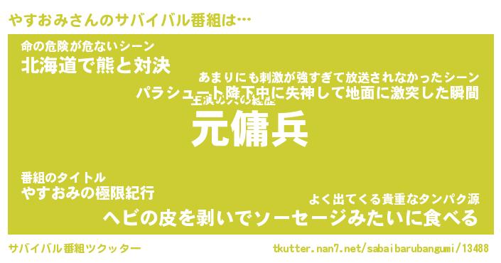 | 意味不明あだ名 | 『ペロリンやすおみ』『永久保存やすおみ』 |