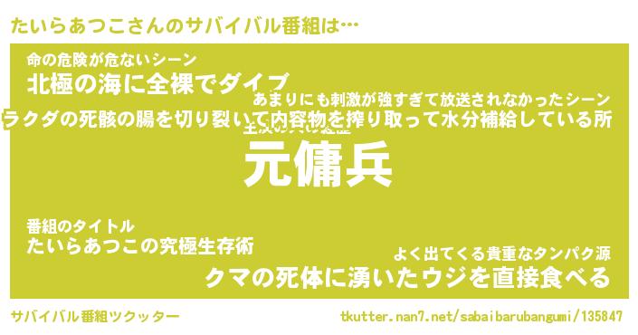 | 恥ずかしいあだ名 | 『プリティーたいらあつこ』『たいっちょ』 |