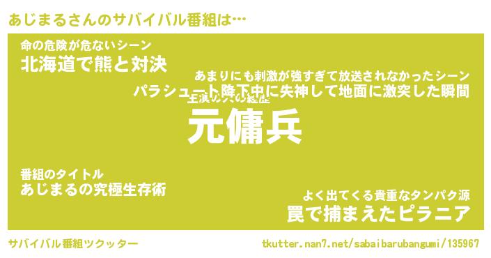 | ヘコむあだ名 | 『あじにー』『なまこ酢』『あじ太郎』 |