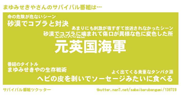 | 伝説のあだ名 | 『伝説のスナイパーまゆみせきや』 |