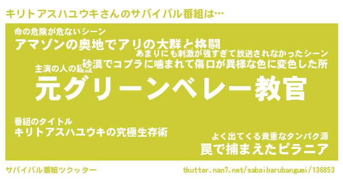 | ポケモン風あだ名 | 『キリチュウ』『キリトダネ』 |