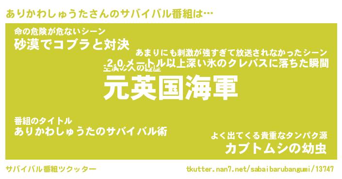 | 胡散臭い通販商品みたいなあだ名 | 『必ず成功するブレスレット…その名も「ありかわしゅうた」』 |
