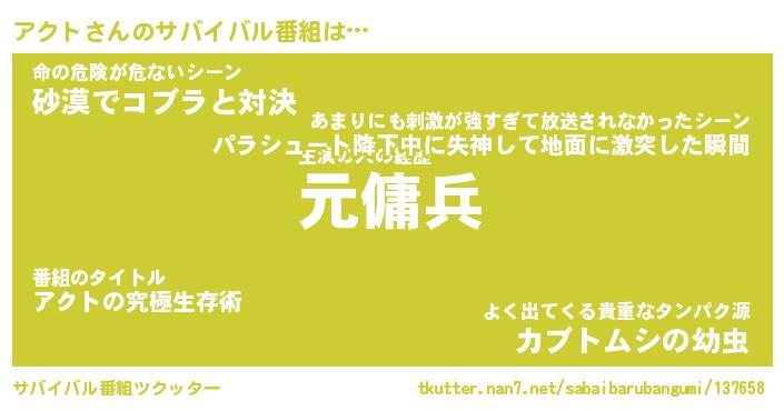 | ヒーロー風カッコイイあだ名 | 『スーパーアクト』『ウルトラアクトマン』 |