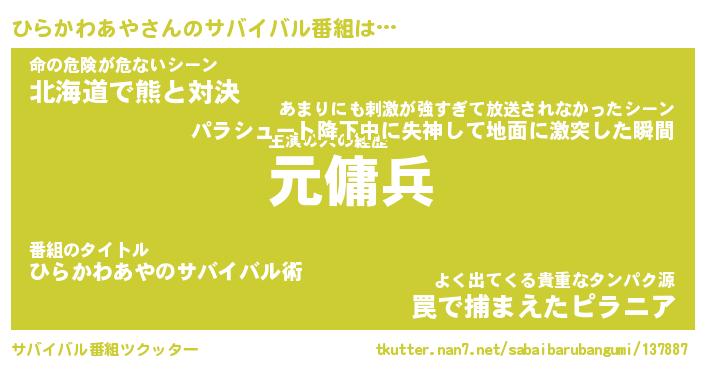 | 胡散臭い通販商品みたいなあだ名 | 『億万長者になれるブレスレット…その名も「ひらかわあや」』 |