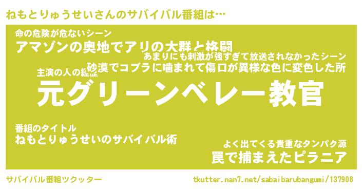 | ヒーロー風カッコイイあだ名 | 『スーパーネモトリュウセイ』 |