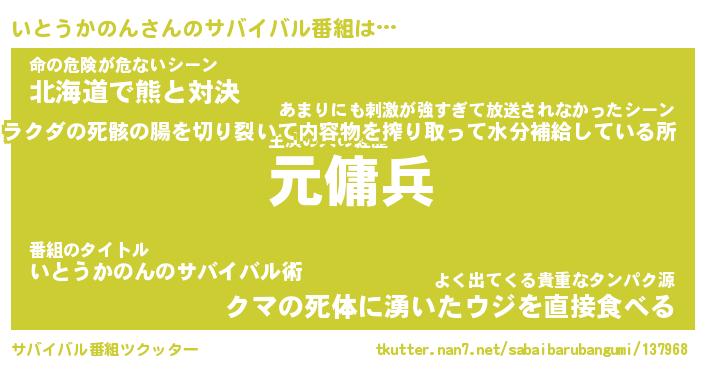 | ヒーロー風カッコイイあだ名 | 『スーパーイトウカノン』『魔戒騎士イト』 |
