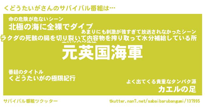 | 伝説のあだ名 | 『伝説のスナイパーくどうたいが』 |
