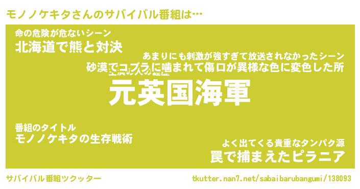 | 伝説のあだ名 | 『伝説のスナイパーモノノケキタ』 |