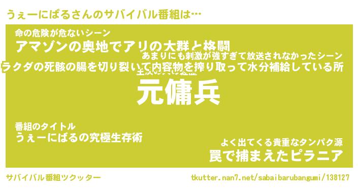 | 伝説のあだ名 | 『封印されしスナイパーうぇーにばる』 |