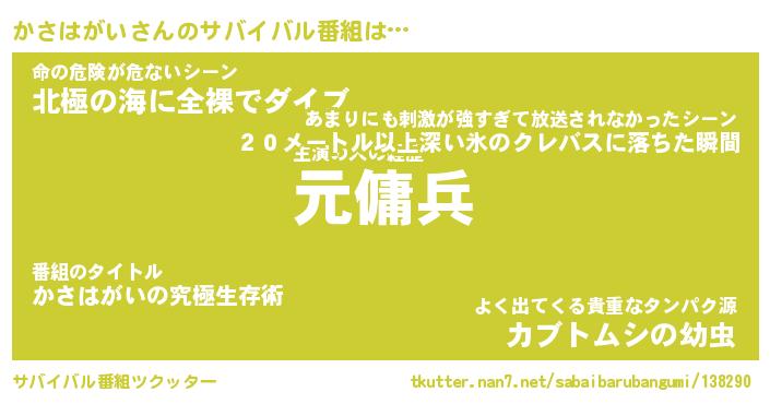 | ヒーロー風カッコイイあだ名 | 『スーパーカサハガイ』『黄金騎士カサ』 |