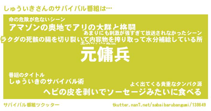 | ヒーロー風カッコイイあだ名 | 『スーパーシュウイキ』『幻影騎士シュ』 |