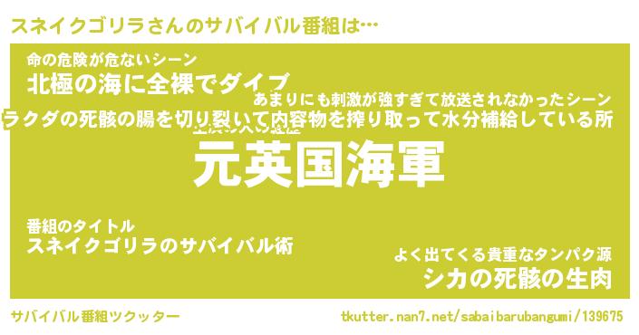 | 伝説のあだ名 | 『伝説のスナイパースネイクゴリラ』 |