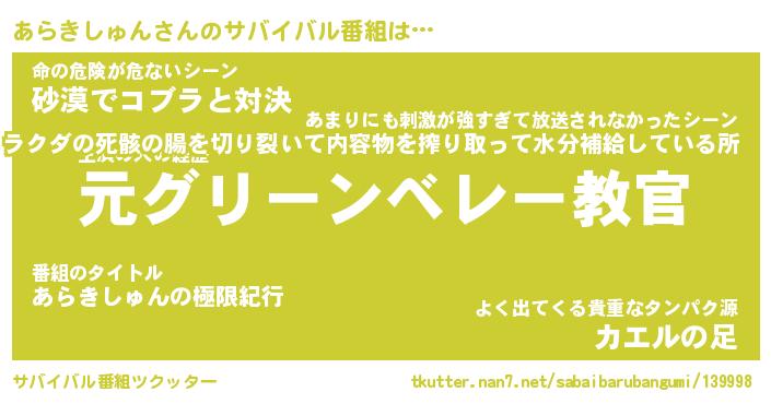 | ヒーロー風カッコイイあだ名 | 『スーパーアラキシュン』『炎刃騎士アラ』 |