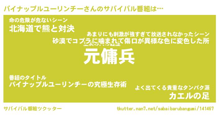 | 胡散臭い通販商品みたいなあだ名 | 『億万長者になれるブレスレット…その名も「パイナップルユーリンチー」』 |