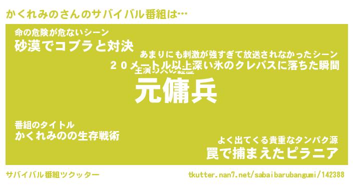 | ツイッター | かくれみのさんのツイッターID『fukuyoka_man』 |