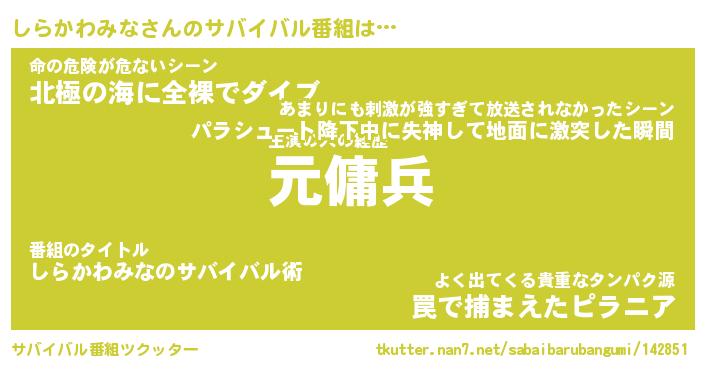 | 胡散臭い通販商品みたいなあだ名 | 『億万長者になれるブレスレット…その名も「しらかわみな」』 |