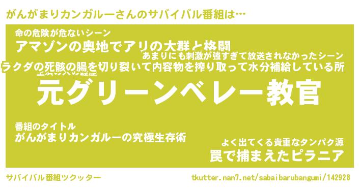 | 伝説のあだ名 | 『不死鳥の傭兵がんがまりカンガルー』 |