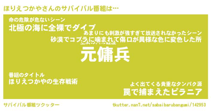 | ヒーロー風カッコイイあだ名 | 『スーパーホリエツカヤ』『天弓騎士ホリ』 |