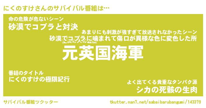 | 伝説のあだ名 | 『伝説のスナイパーにくのすけ』 |