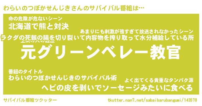 | ヒーロー風カッコイイあだ名 | 『スーパーワライノツボカセンジキ』 |
