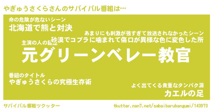 | 欧米人風あだ名 | 『マイケルやぎゅうさくら』 |