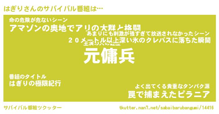 | ヒーロー風カッコイイあだ名 | 『スーパーハギリ』『ウルトラはぎりマン』 |
