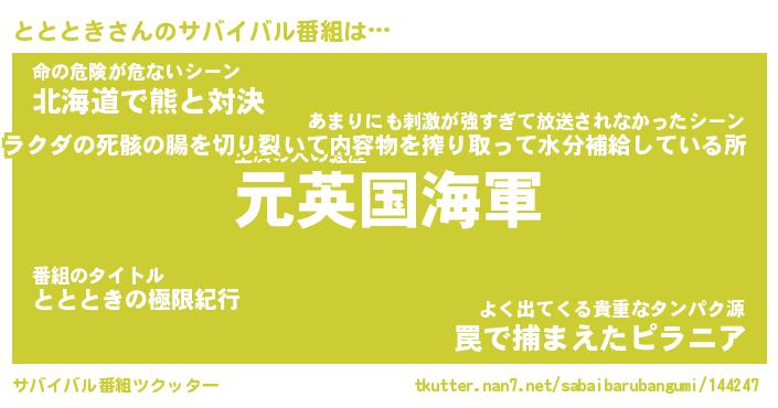 | 意味不明あだ名 | 『ペロリンとととき』『永久保存とととき』 |