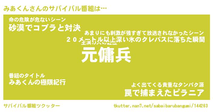 | 胡散臭い通販商品みたいなあだ名 | 『億万長者になれるブレスレット…その名も「みあくん」』 |
