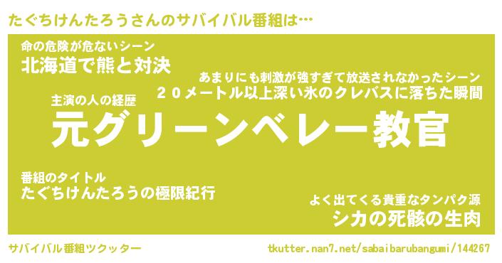 | 伝説のあだ名 | 『不死鳥のスナイパーたぐちけんたろう』 |