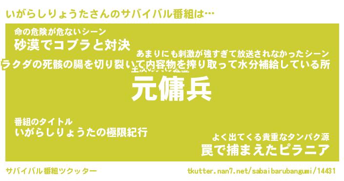 | 胡散臭い通販商品みたいなあだ名 | 『億万長者になれるブレスレット…その名も「いがらしりょうた」』 |
