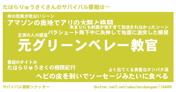 | 伝説のあだ名 | 『不死鳥のスナイパーたはらりゅうさく』 |