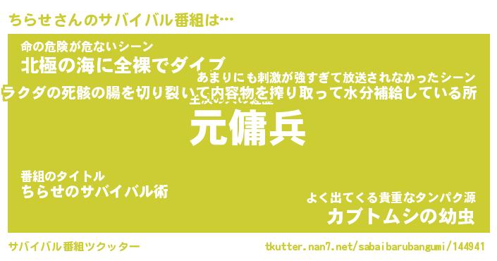| 胡散臭い通販商品みたいなあだ名 | 『億万長者になれるブレスレット…その名も「ちらせ」』 |