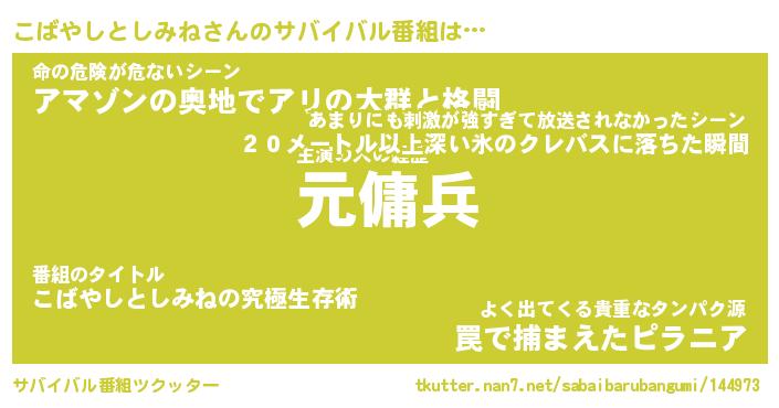 | 胡散臭い通販商品みたいなあだ名 | 『億万長者になれるブレスレット…その名も「こばやしとしみね」』 |