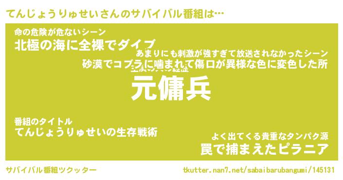 | ヘコむあだ名 | 『てんにー』『なまこ酢』『てん太郎』 |